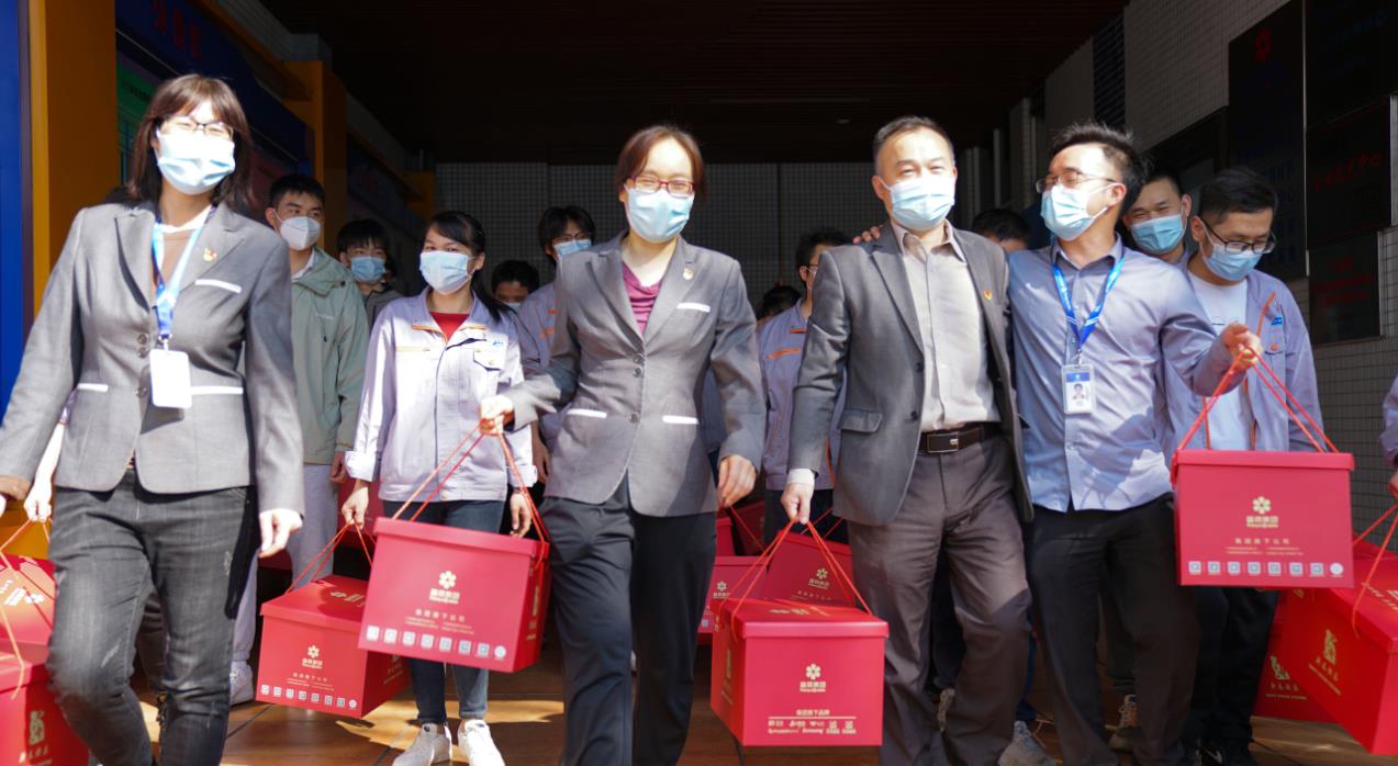 1月14日,在集團(tuán)黨支部書記陳雪兒的帶領(lǐng)下,為員工發(fā)放米、面、油、糖果、曲奇餅等春節(jié)福利,一份份沉甸甸的禮品,滿載著集團(tuán)對(duì)員工及員工家屬的關(guān)懷問(wèn)候和新春祝福。